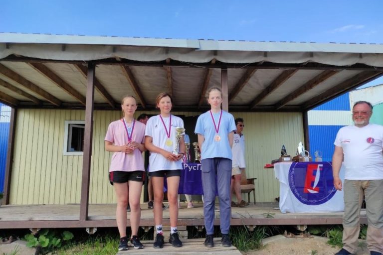 В классе «Луч-мини» на высшую ступень пьедестала почета поднялась Ирина Герасимова (на верхнем снимке в центре). Второе место заняла Вероника Терпигорева (на верхнем снимке слева). Девушки занимаются парусным спортом под руководством Ивана Абросова.