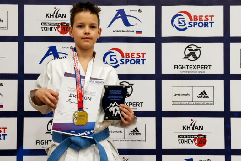 Максим выступал в дисциплине «Ката» среди юношей 12-13 лет и по итогам четырех кругов завоевал золотую медаль, став лучшим среди сверстников и выполнив норматив для повышения своего спортивного статуса.